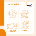 Queste sono le schede di candidatura delle persone che sono poi entrate a far parte dell’esecutivo, e annualmente la federazione pubblica un dossier che racconta le organizzazioni che la compongono e ne aggiorna la portata delle azioni: il dossier del 2025, “Cose dell’altro mondo”, è scaricabile qua, e questi sottostanti sono i numeri del CNCA Lombardia aggiornati a dicembre 2024.